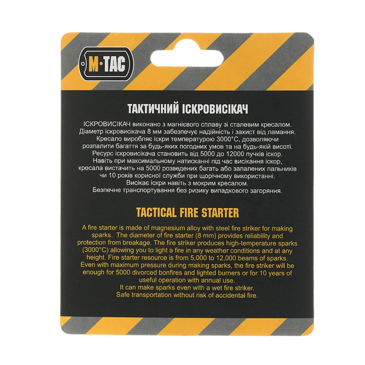 M-Tac Tändstål är ett oumbärligt redskap för camping och friluftsliv. Det är tillverkat av magnesiumlegering och har en 8 mm ståltand som framkallar gnistor vid 3000 °C.