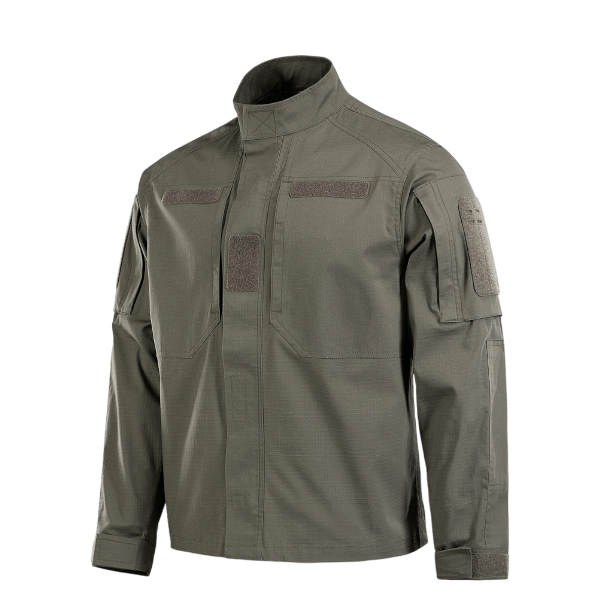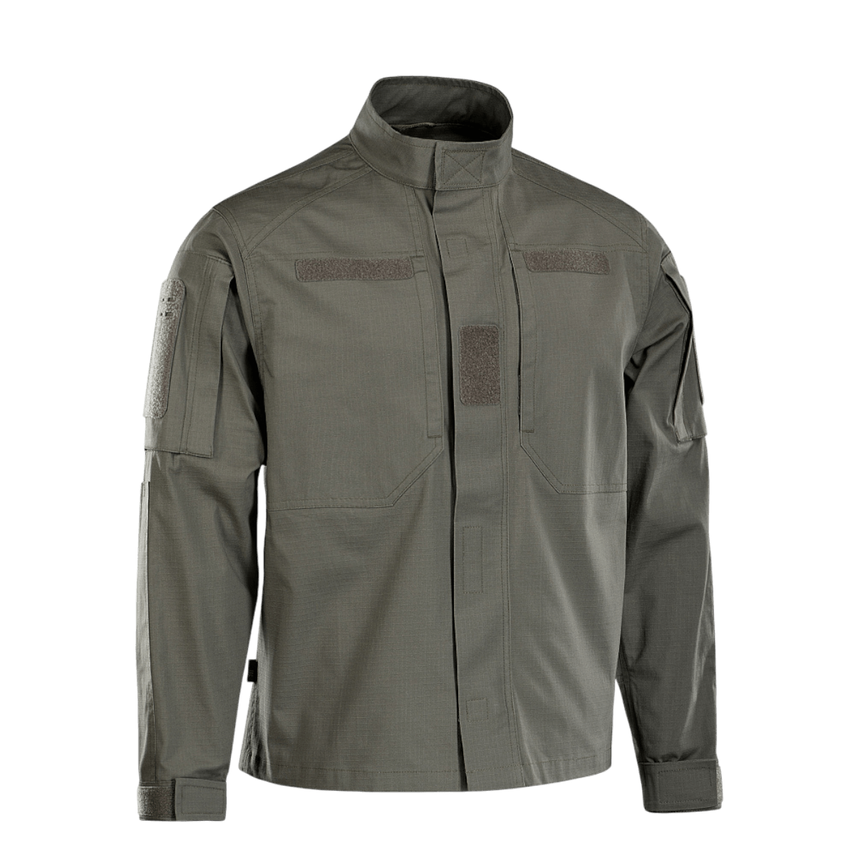 M-Tac Patrol Flex jacka har en bekväm, lätt figursydd passform. Jackan har en ståkrage, dragkedja med velcro samt en central stängning i form av en avtagbar "tractor"-plastdragkedja som täcker velcro-remsorna. På bröstet finns två dolda velcro-fickor med vertikala öppningar för enkel åtkomst till innehållet samt horisontella velcro-paneler för namnskyltar och märken med medicinsk information.