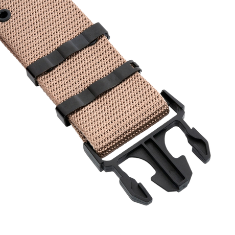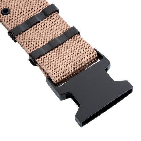 Designen fokuserar på funktionalitet med kraftiga spännen, justerbara remmar och möjlighet att montera extra utrustning och fickor. Resultatet är ett bälte som inte bara håller byxorna på plats, utan samtidigt fungerar som en del av din utrustning.