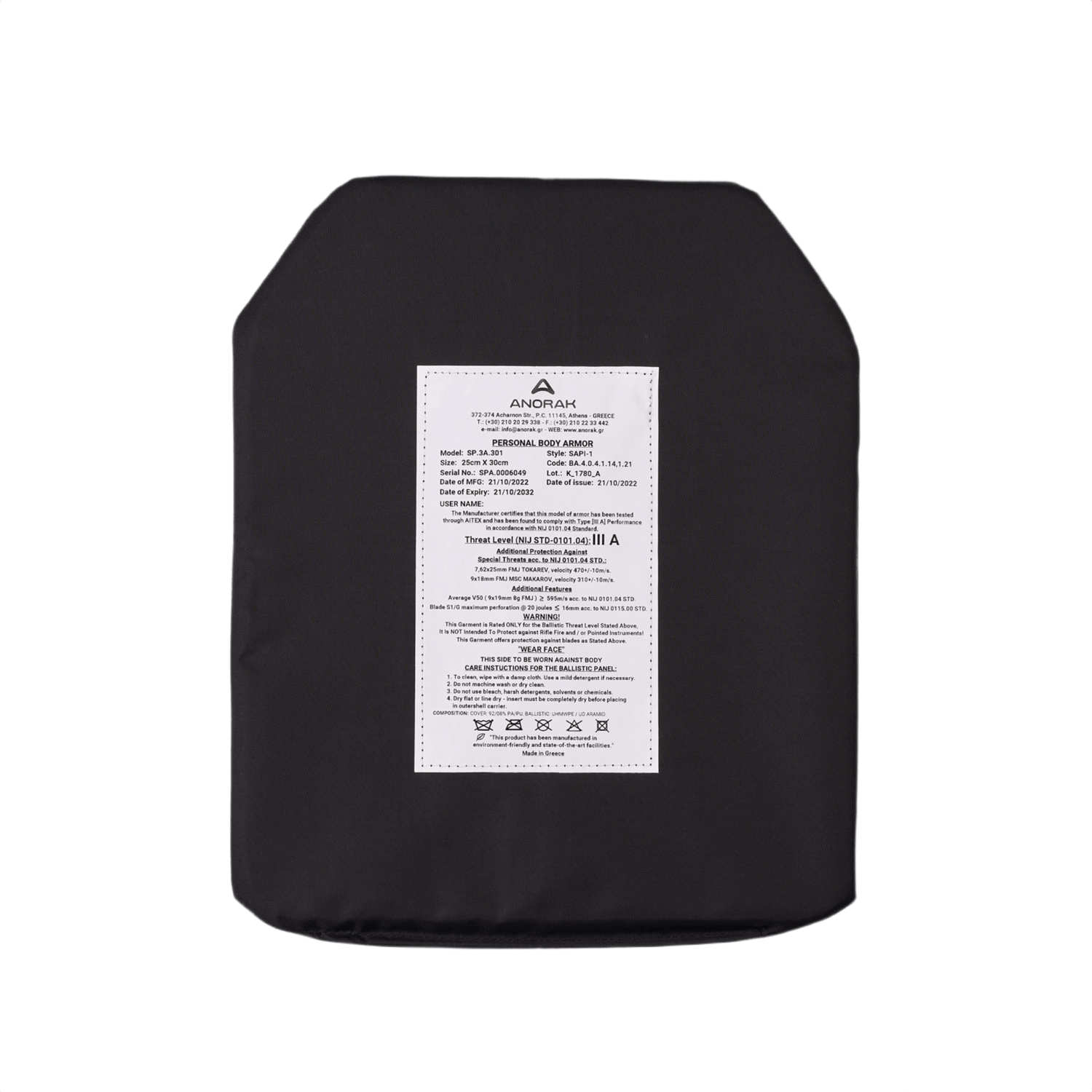Anorak Titanium® insats (SAPI) - Sortera / 25x30cm