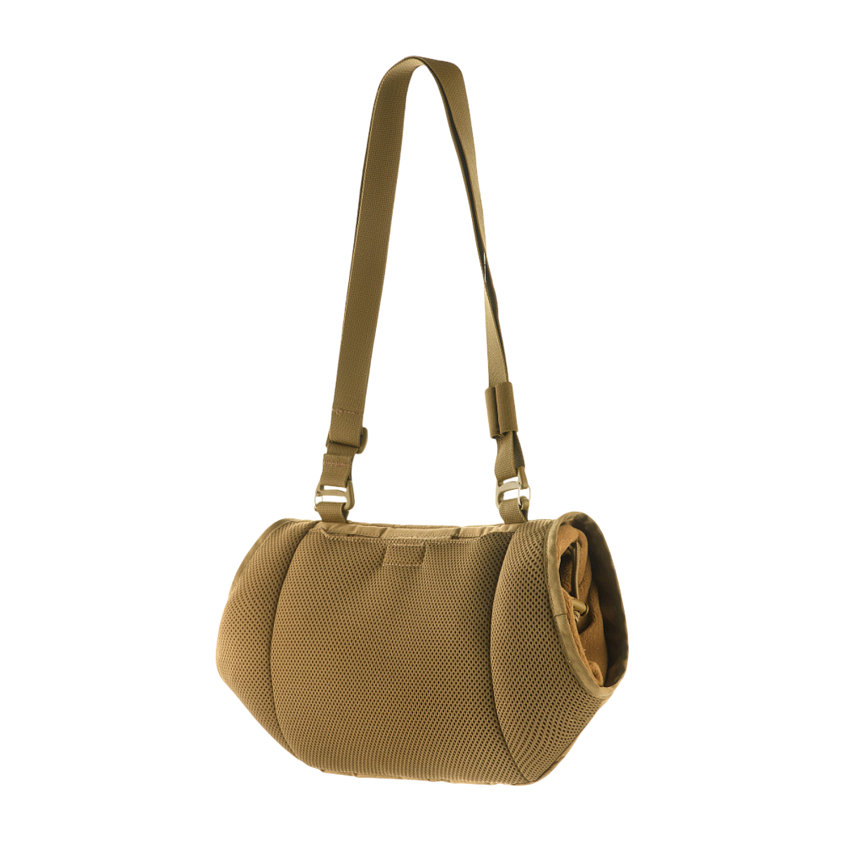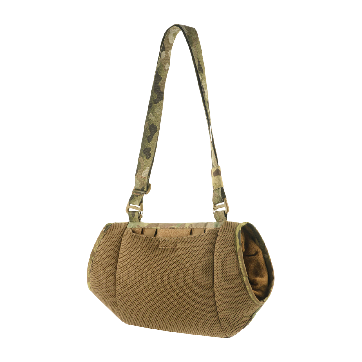 Den medföljande axelremmen gör det möjligt att bära handvärmaren i flera positioner, och den kan dessutom fästas direkt på plate carriers eller skottsäkra västar via Velcro eller T-formade MOLLE-fästen.